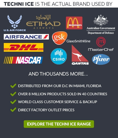 Techni Ice™ Coolers & Reusable dry ice packs are used by some of the world’s largest companies and government organisations including U.S Air Force, DHL, Pfizer, Meals on wheels, McDonalds, BHP, Air France and of course the Atlanta and Beijing Olympics to name a few.